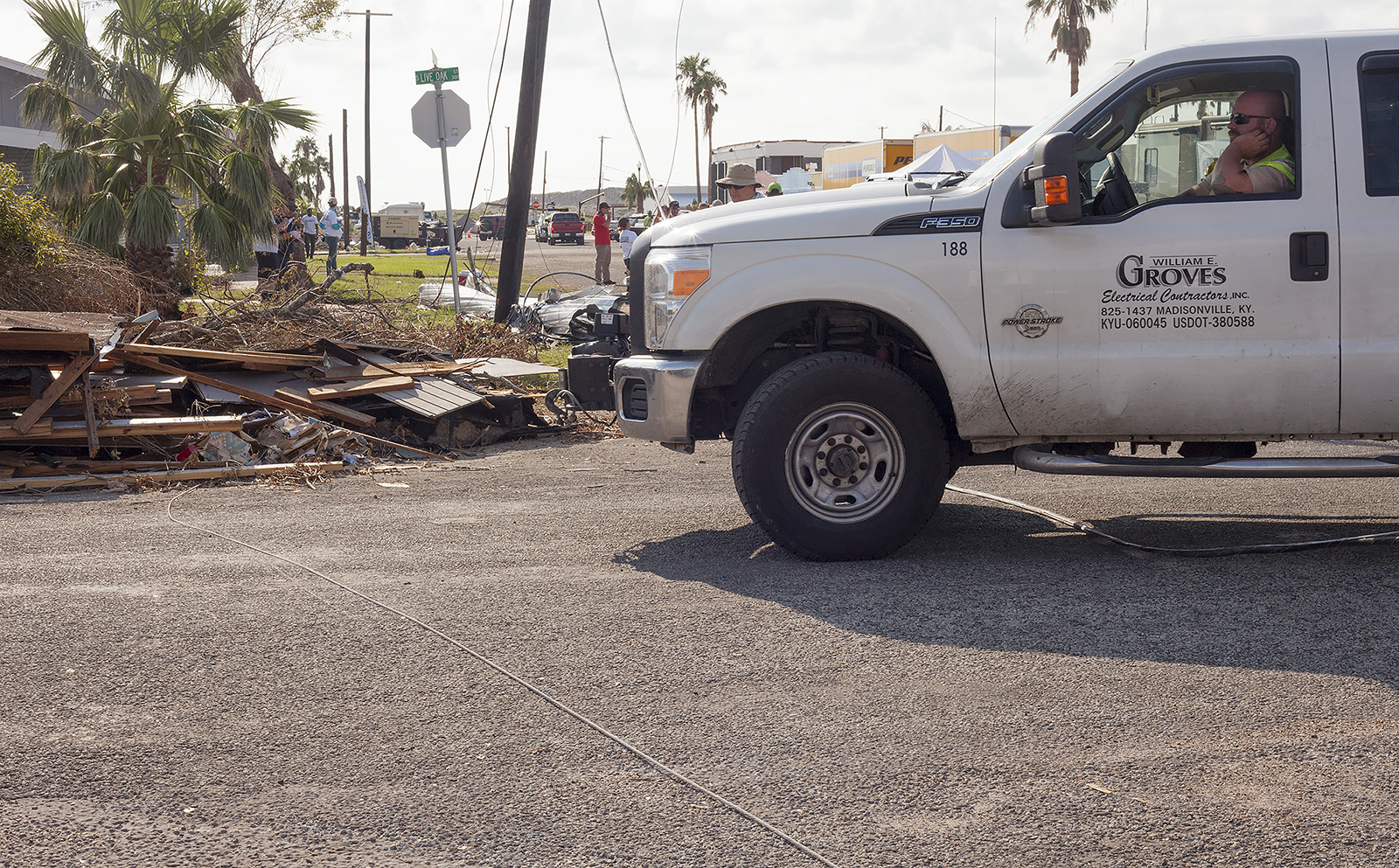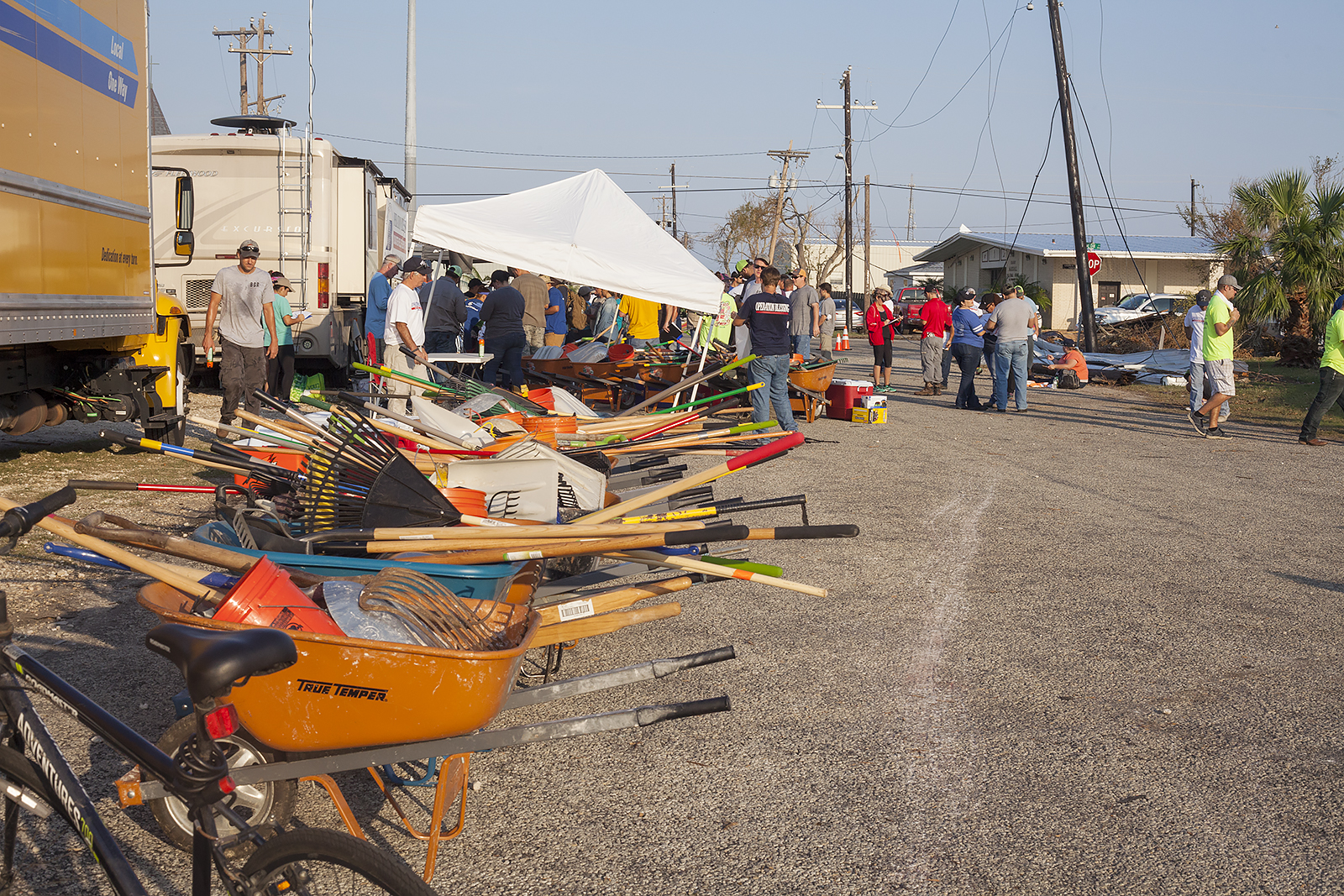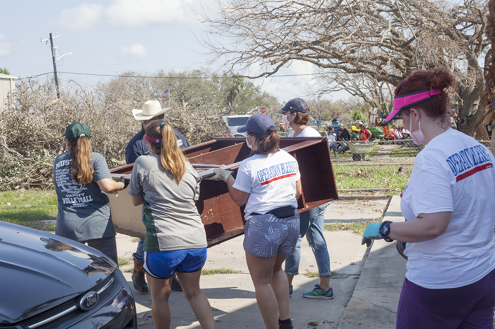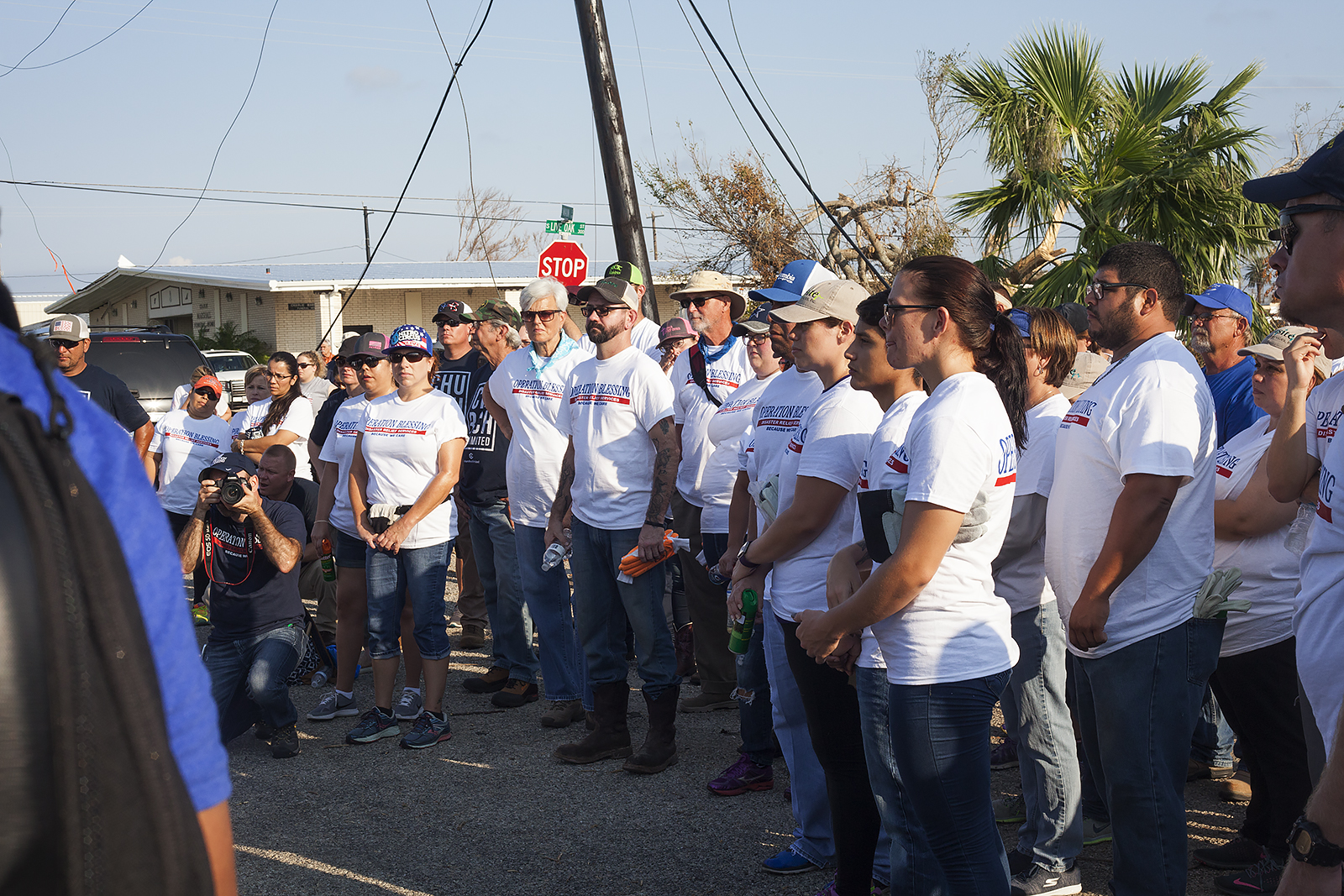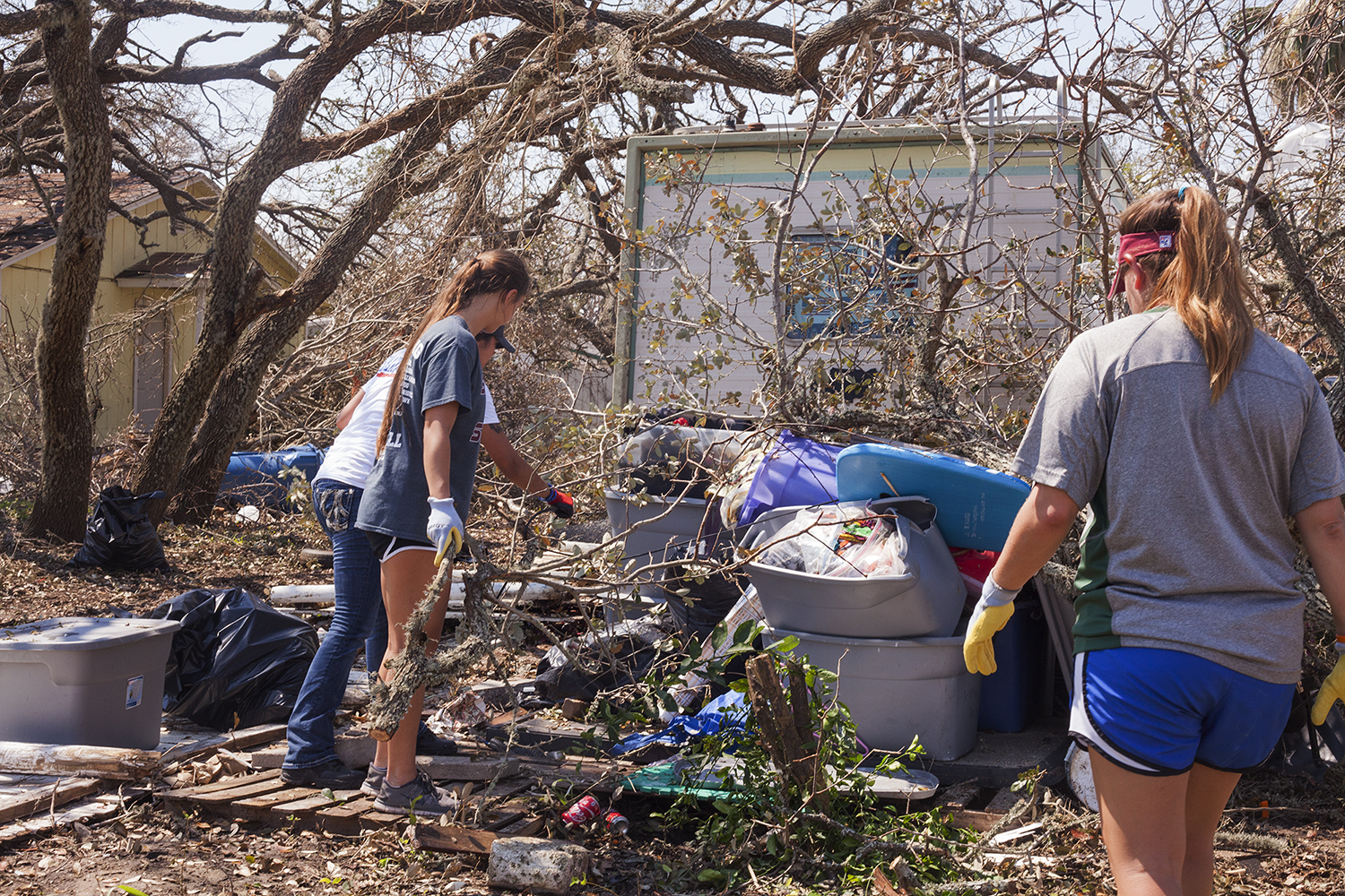 As we drove into Rockport, we saw power lines bowed toward earth, service trucks lining the streets, and people in white or blue t-shirts filling the parking lot of Church Unlimited. Their own building destroyed, they were still hosting Operation Blessing, the ministry that came from Virginia to send out workers into the fields. People came from Wisconsin, California, Kentucky, Tennessee and even Australia to serve! What love.