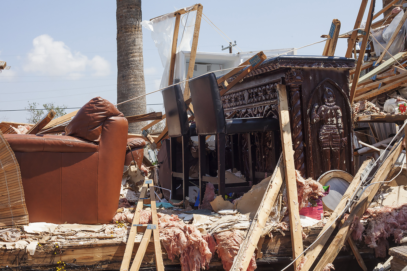 Three very emaciated kittens darted under and around the trailer as we sat together in the shade and the women shared their story. They’ve been staying with three other families in a home far from theirs. One of the ladies, Sylvia, a mother of two, had not only lost her home but the smoothie shop she worked for in town had been demolished so she had no job to go back to. She told me of how they’d been working alone for the last four days and her nephew had come that day to help. The other woman, Rose, had inherited the property from her parents and planned on staying but had nothing left except a small shed full of her things, most of which were OK, except where the roof had been hit by a tree and rain had come in.